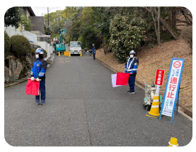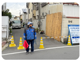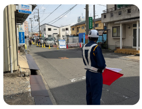 大阪ガス導管工事の交通誘導警備をはじめ、多岐にわたる工事現場の経験がある為、積み上げられた独自ノウハウがあります。また、各現場における地域特性(お客様の生活背景・道路形態・車両交通量など)を考慮して、円滑な交通維持とスムーズな工事作業をサポートします。